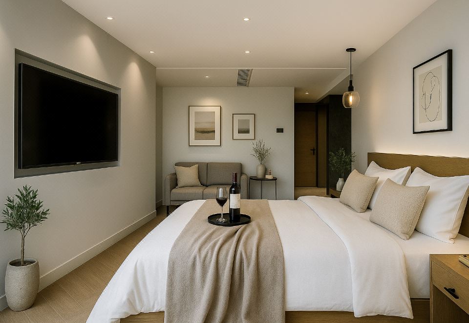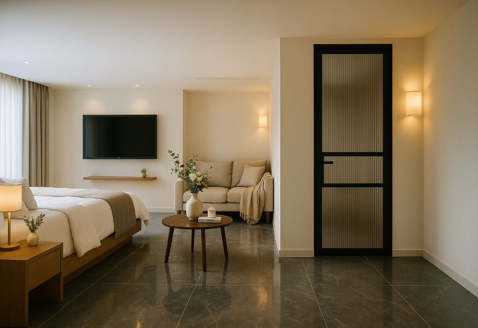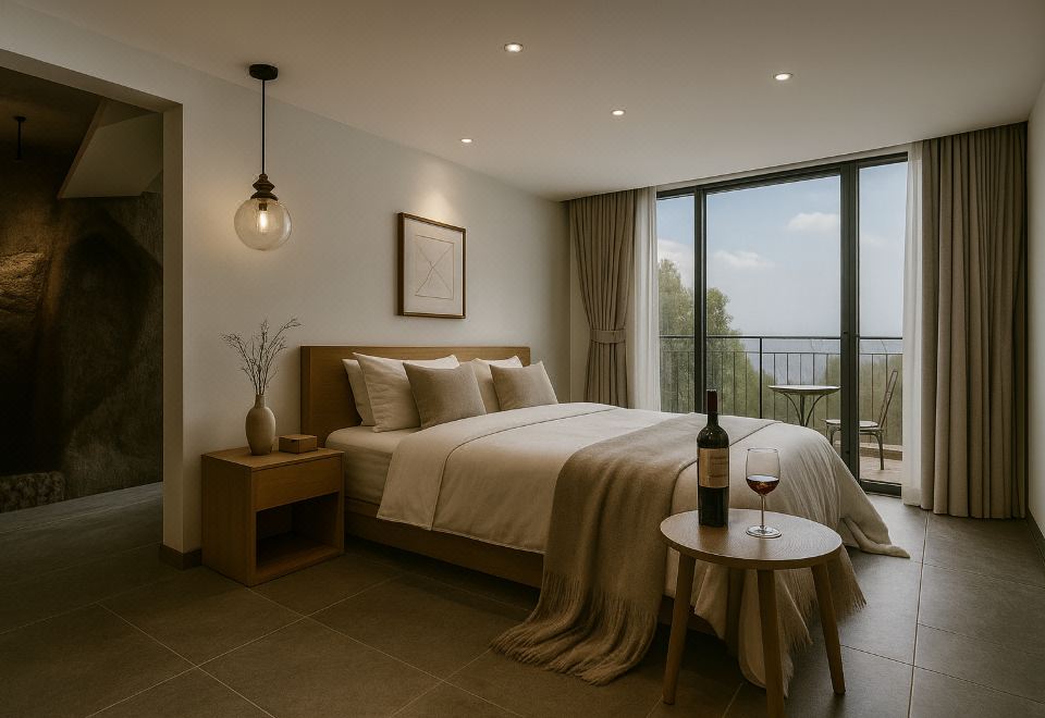 沐岩高空阳台山景温泉私汤大床房