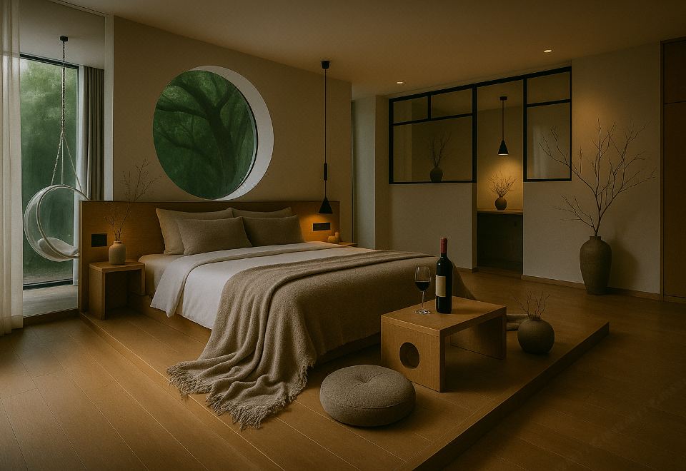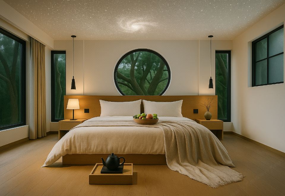 翠竹幽院浴缸大床房(180度落地窗+星空顶+花园景观)
