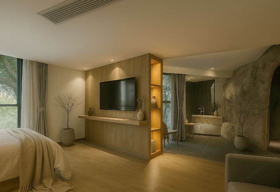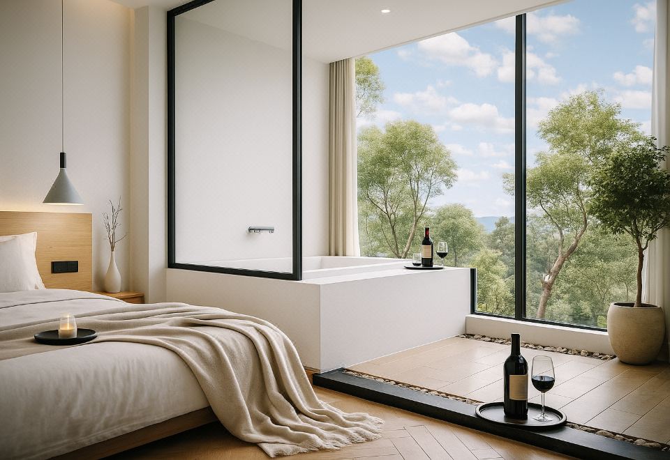 沐岩高空阳台山景温泉私汤大床房